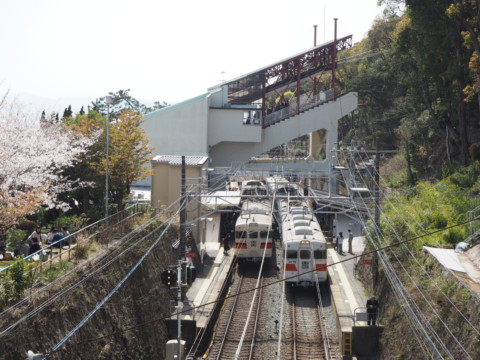 並ぶ山電。切り通しがよく分かります。