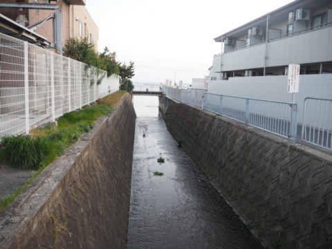 JRを越すと、先ほどの千守川が開渠になります。目の前はすぐに瀬戸内海。