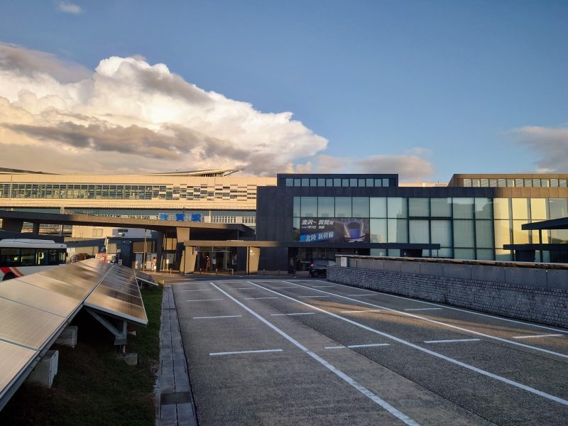 いまの北陸新幹線の終点、敦賀駅で特急サンダーバードに乗り換え。話題の敦賀駅は、さながら要塞のよう。