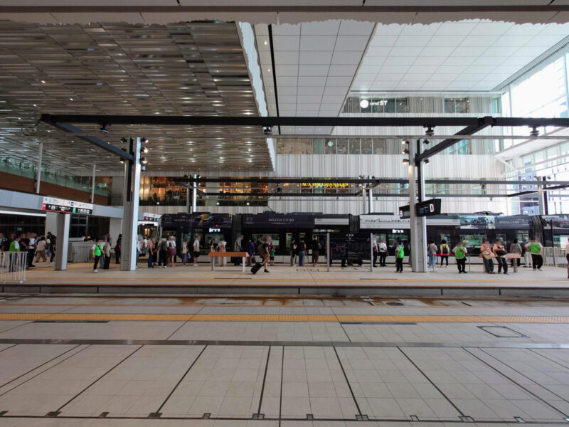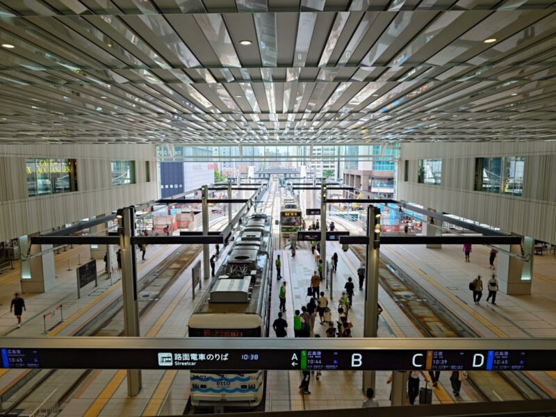 まず向かったのは、リニューアルされた広島駅。路面電車である広島電鉄が駅ビルの2階に乗り入れられるようになったことで、アクセスがさらに便利になり、より多くの観光客で賑わっていました。