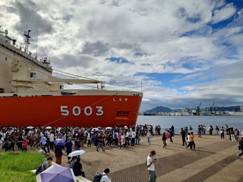 2025年10月11日、砕氷艦「しらせ」が神戸港・ポートアイランド西岸壁に寄港し、艦内見学会が開催されました。