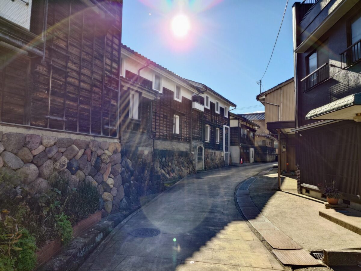 「坡場の坂」は、五箇山街道の起点として栄えた場所にある、風情ある石畳の坂道です。周囲には町家や土蔵が並び、城端の歴史的な町並みと地形の特徴を感じられます。