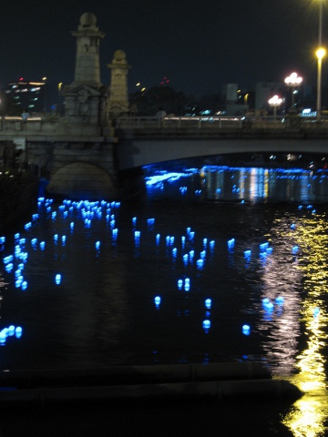 今年も7月7日「平成大阪天の川伝説」に行ってきました!このイベントは大阪・北浜にある八軒家浜船着場から、大川にLEDの入った10cmほどの球を放流してライトアップするものです。