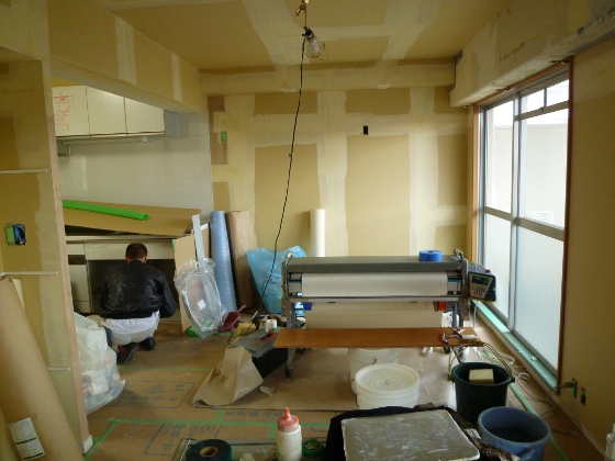 この機械で壁紙を自動的に任意のサイズにカットしてくれるらしいです。現場もデジタルっすなー。