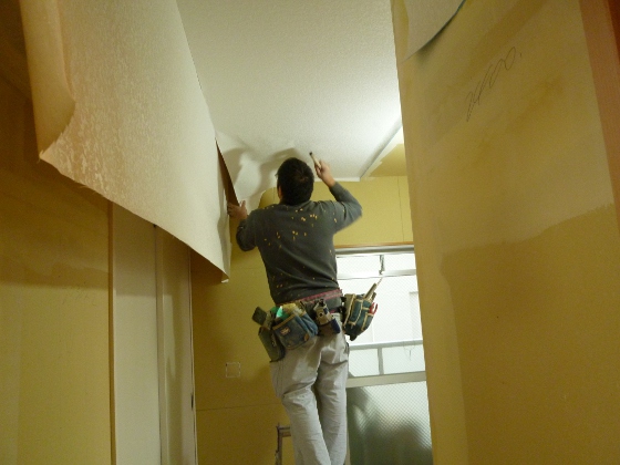 現在クロスが張られつつあります。騒音がしないので休日もやってくれているよう・・・お疲れ様です。。。