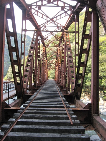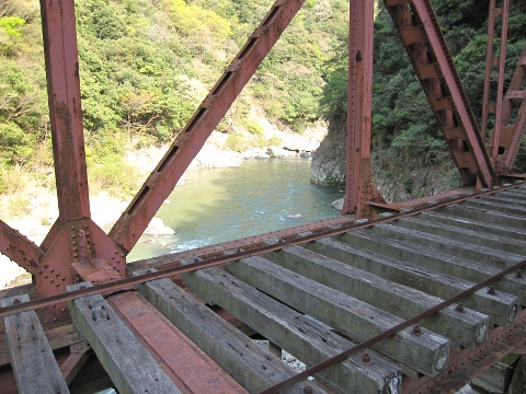 保線用の側道を使って橋を渡ったのですが、高所恐怖症でなくてもちょっと怖いかもしれませんw先述のように老朽化した金属を踏み抜くのはゴメン被りたいですから。