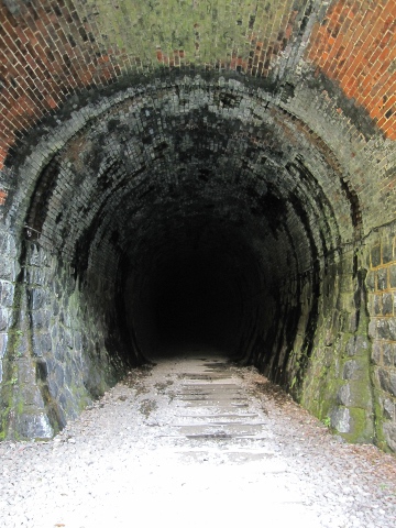 溝滝尾トンネル。開通から100年以上経過しているのに、しっかりした造りです。蒸気機関車が運行していた名残か、壁面を触るとススだらけにw