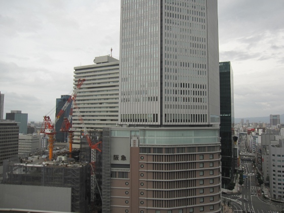 阪急百貨店の2期工事がよく見えました。もう大分でかくなったんですね。それより早く地上の通路を整備して欲しいです。狭くて通りにくい。。。