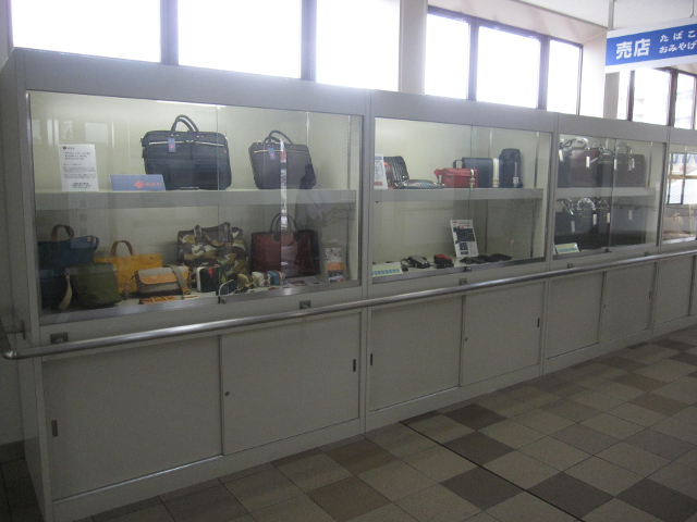 改札前には豊岡の名産品が展示してあります。