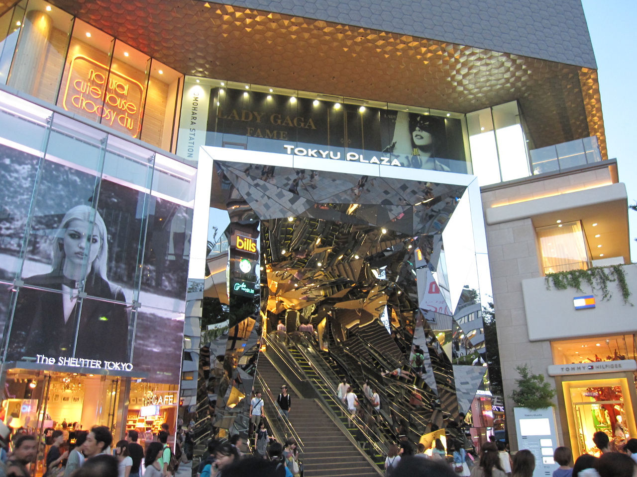 入り口が3Dのポリゴンモデルに鏡を貼り合わせた外装で、どこか宇宙的な印象でした。エスカレータで登っていくときに、移りゆく壁面を見ていると、不思議な気持ちになりますw
