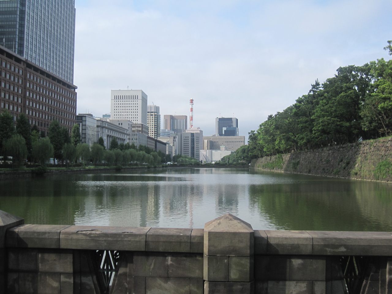 皇居は馬場先濠を南向きに望む。濠だけあって、水との距離が近い!そして江戸城だけあって幅が広い!ほんと都心にあって異質な場所です。