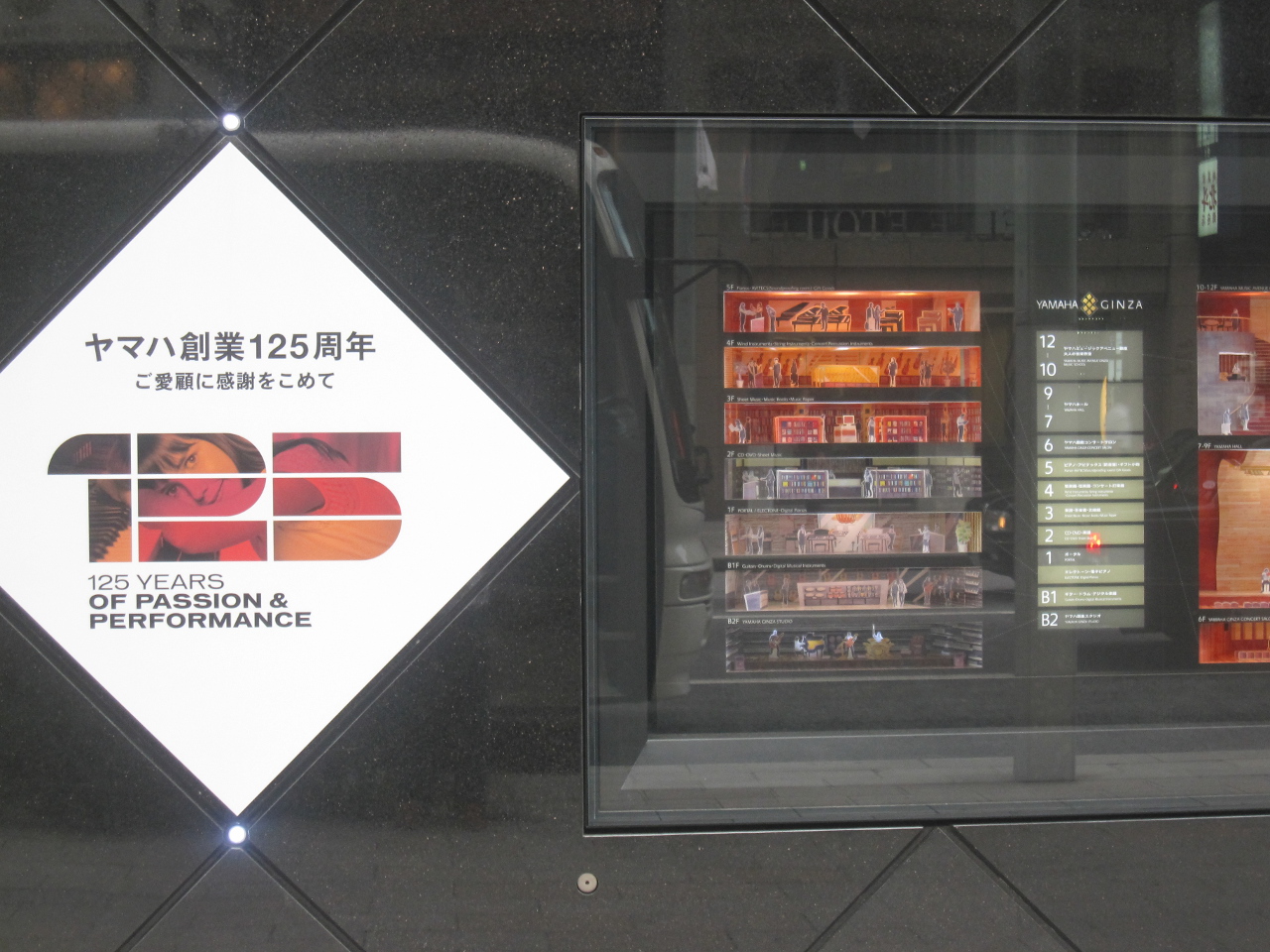 銀座の少し南側に、ヤマハ銀座ビルがあります。金ぴかのてかてかなので、一度見たかったんです。あんまり見付け面積が大きくないから、思ったほど存在感はなかったです。でも異様ですねw