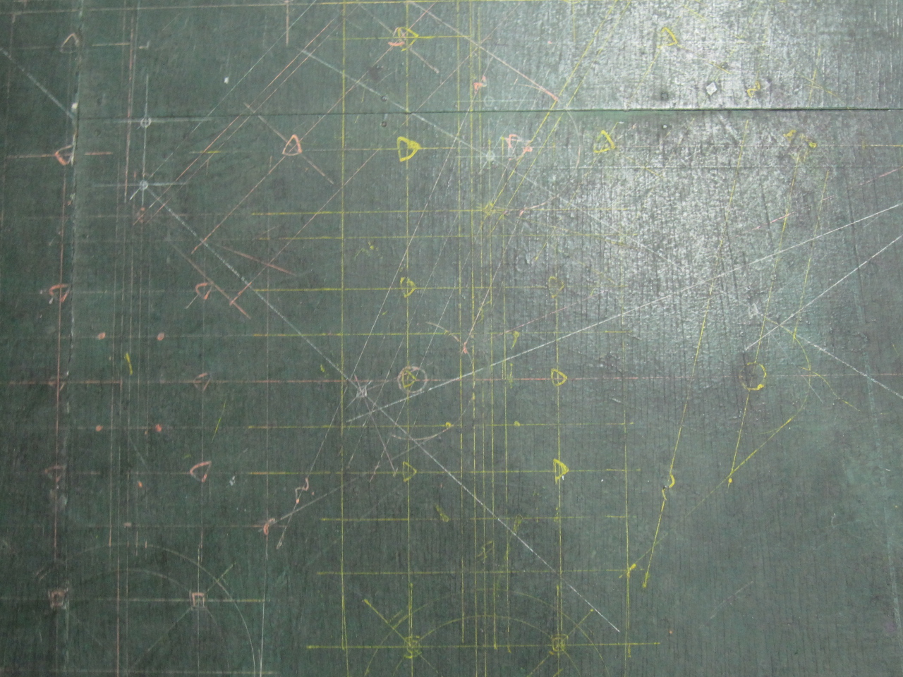床面には実際の製図のあとが残っています。スケール感が分かりにくいですが、とても細密な図面です。残念ながら造船の役目を終えた後、橋梁の設計をした際のものらしいですが。