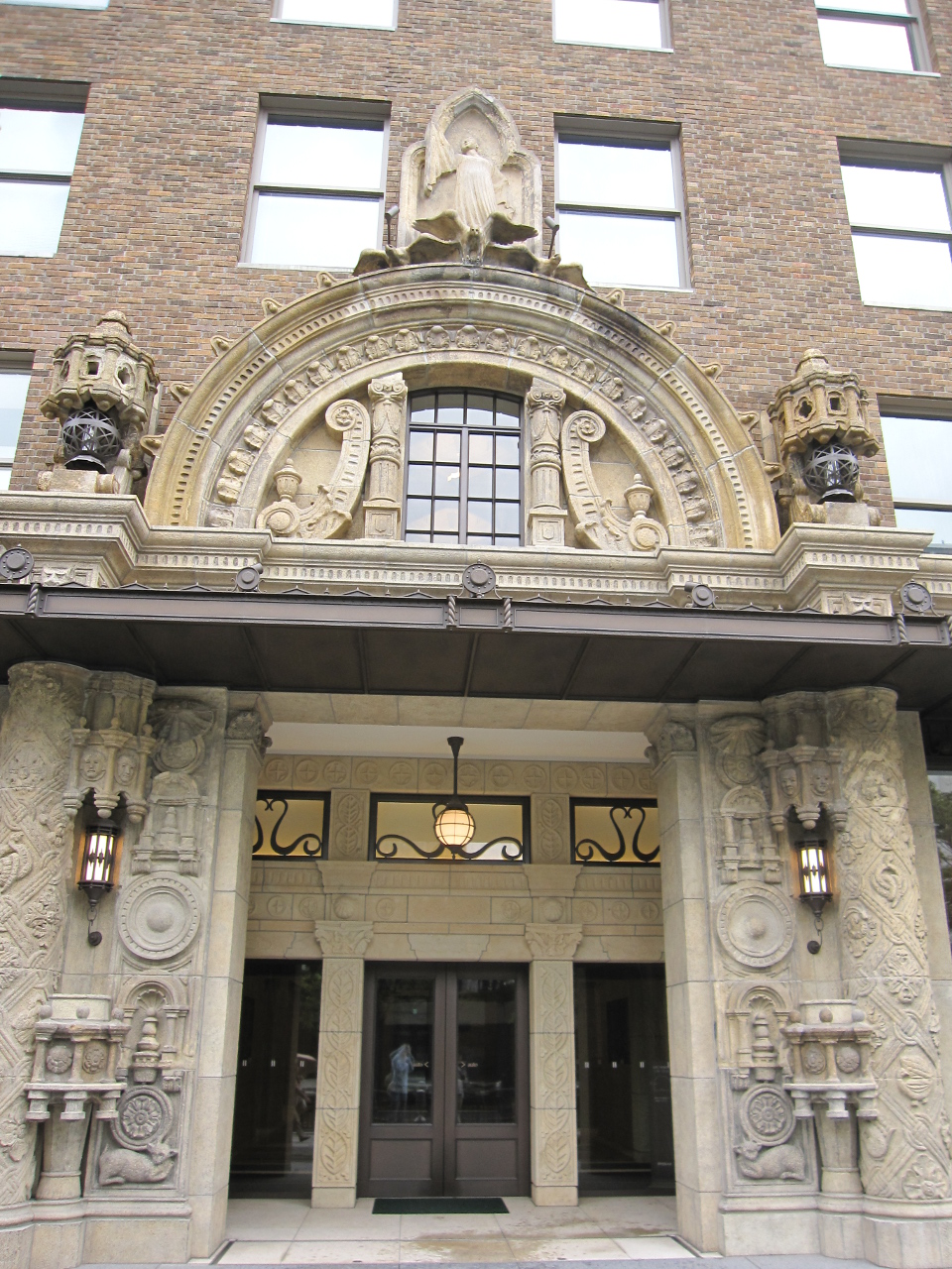 かつての正面玄関も修復され、再現されています。いまでは考えられない細部の装飾ですので、こういう形ででも保存されたのは、すごく貴重なことだと思います。