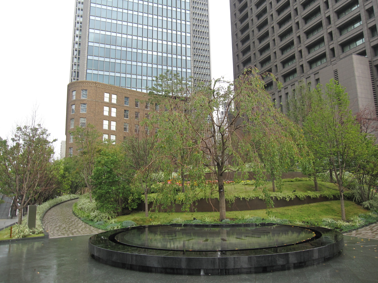 ダイビル本館前には公開空地が設けられています(ビルを高層化するための対価として設けているオープンスペース)。よく見かける殺風景な空間ではなく、小高い丘になっていて、とても興味深かったです。何か地中に埋まっているのかしら。