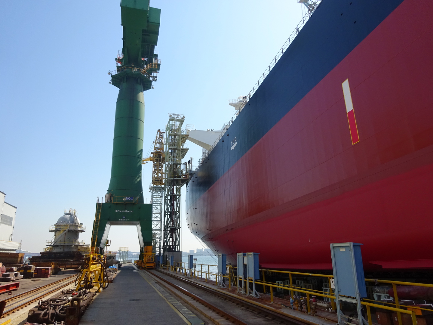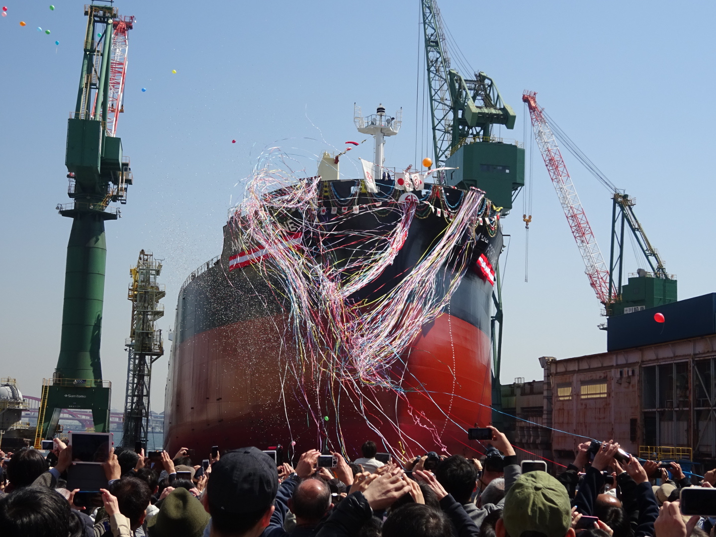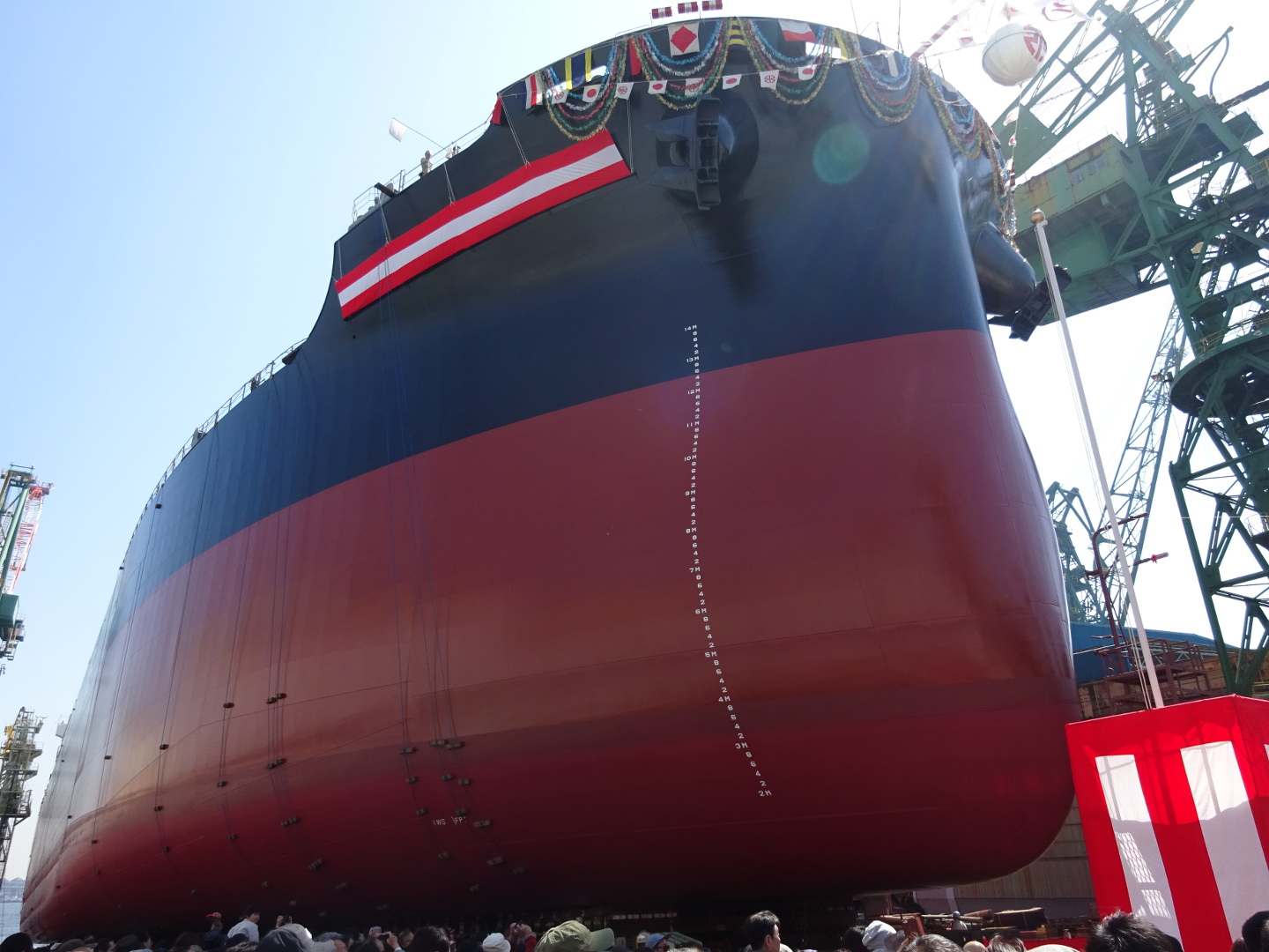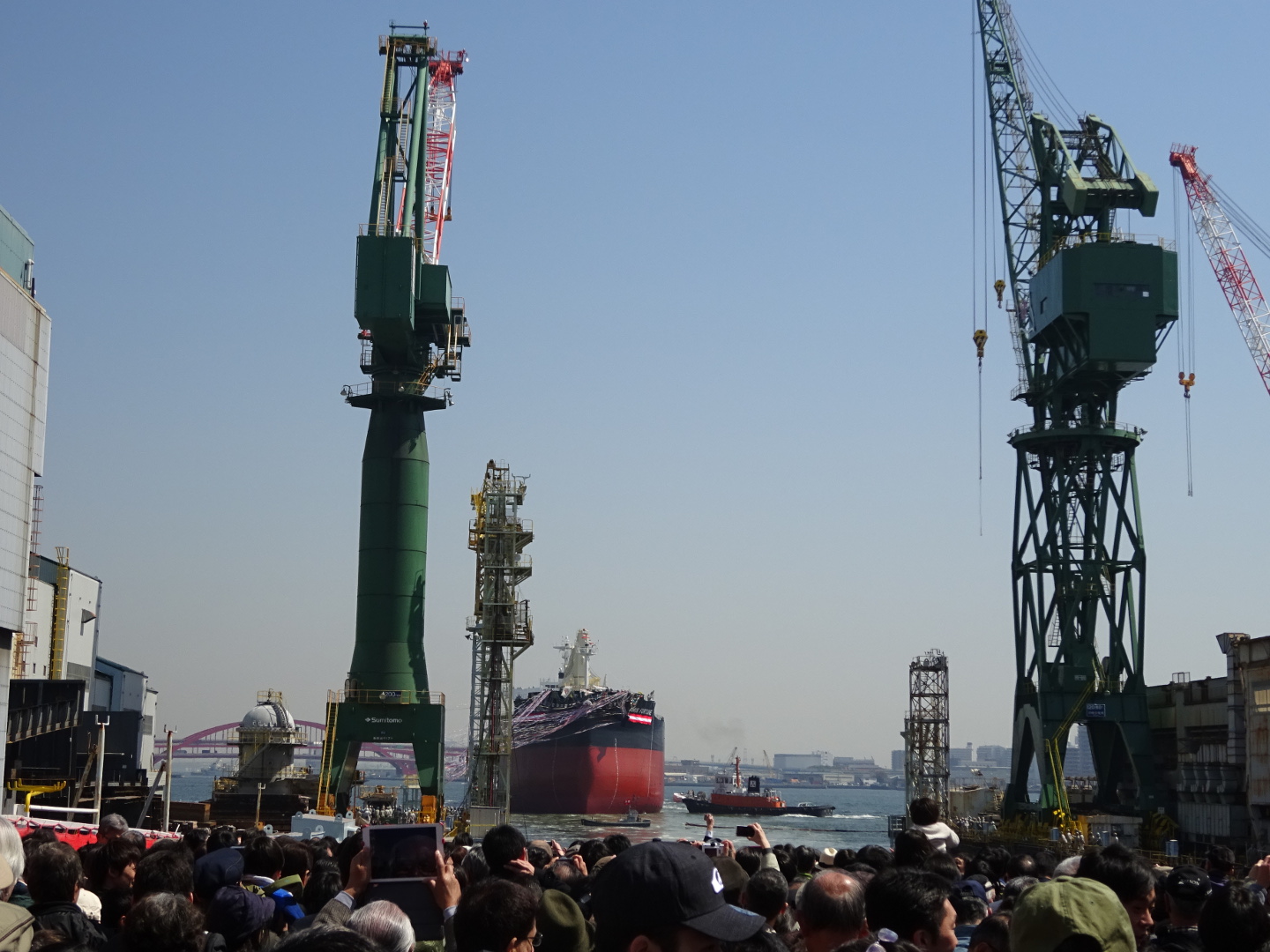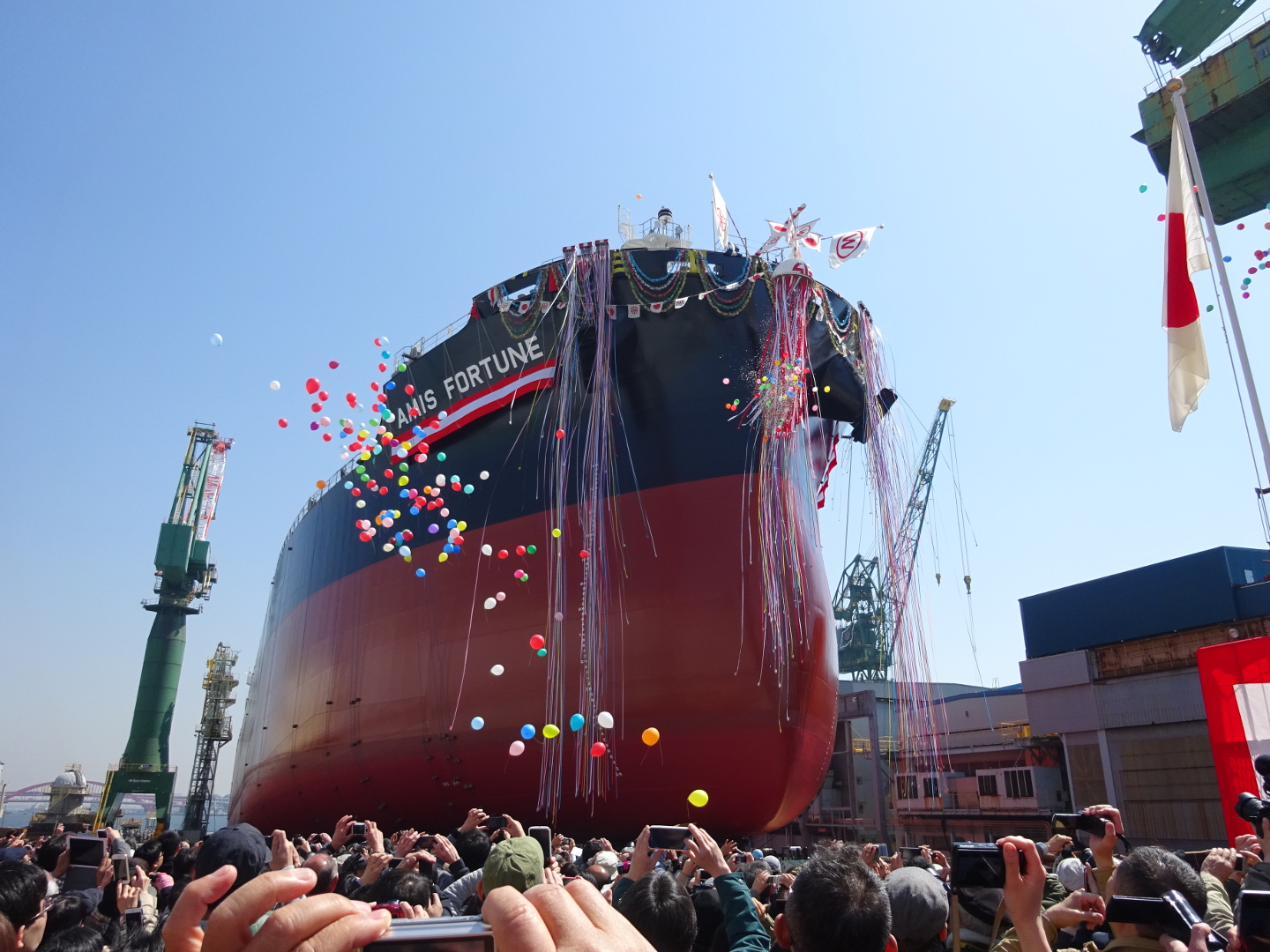 川崎重工業 神戸造船工場にて行われたばら積運搬船「AMIS FORTUNE」の進水式に当選したので、見学してきました。