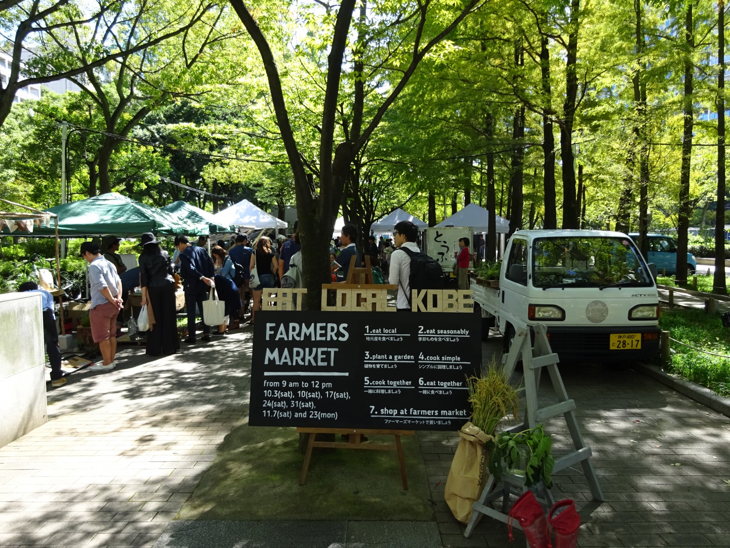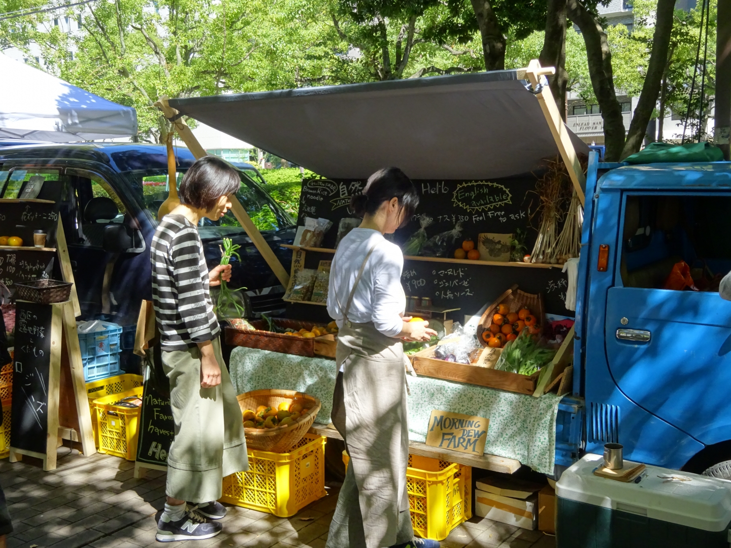 東遊園地にてファーマーズマーケット始まりました!天気にも恵まれて、気持ちいいブランチです。